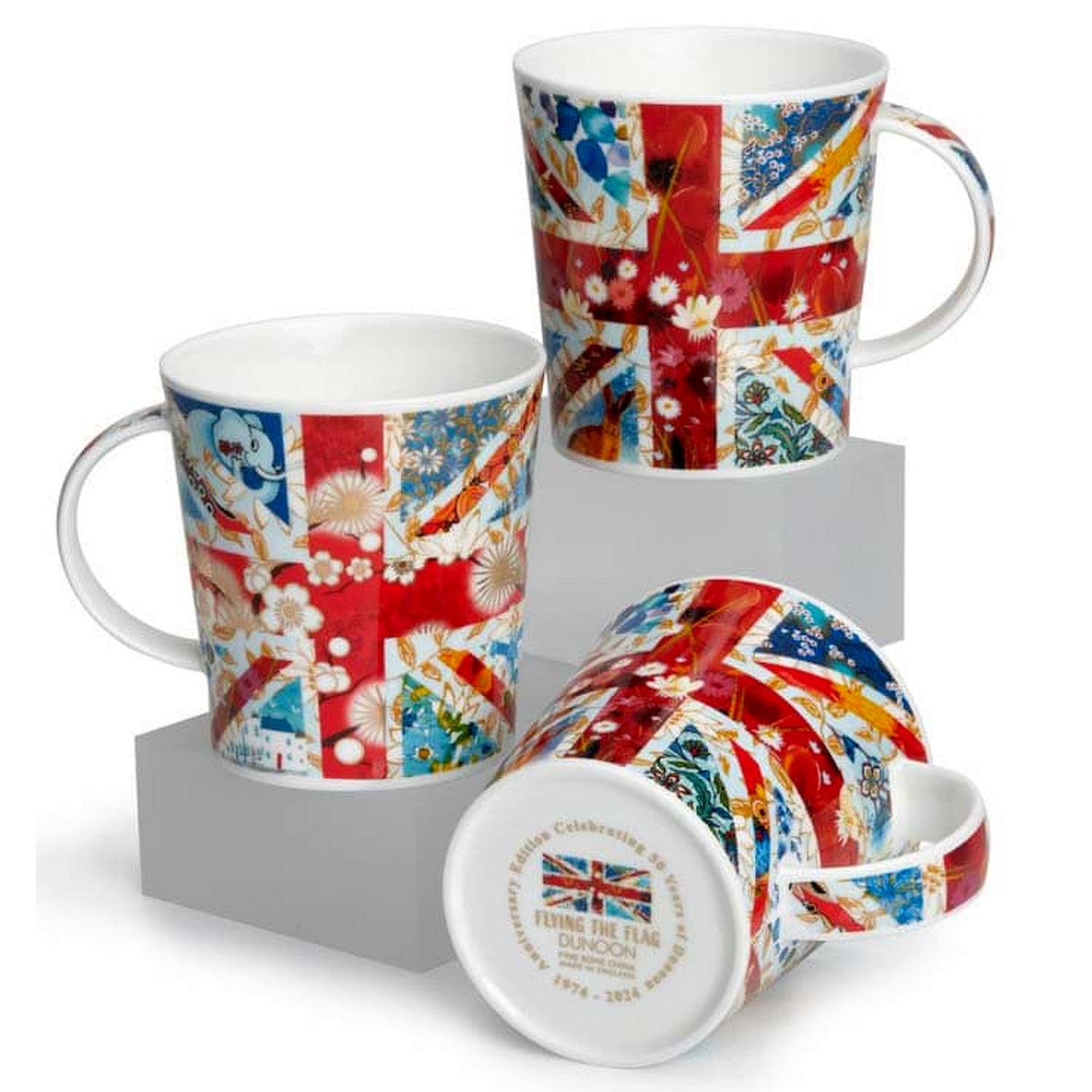 Diese Tasse wurde anlässlich des 50-jährigen Jubiläums gestaltet und feiert insbesondere die heute recht selten gewordene Herstellung im Vereinigten Königreich mit dem exklusiven Design „Flying the Flag“. Ebenfalls eingeflossen sind einige der besten Originalkunstwerke aus den früheren und aktuellen Dunoon-Motiven. Und ganz on top wird das Jubiläumsstück mit einem 22-karätigen Golddekor veredelt.