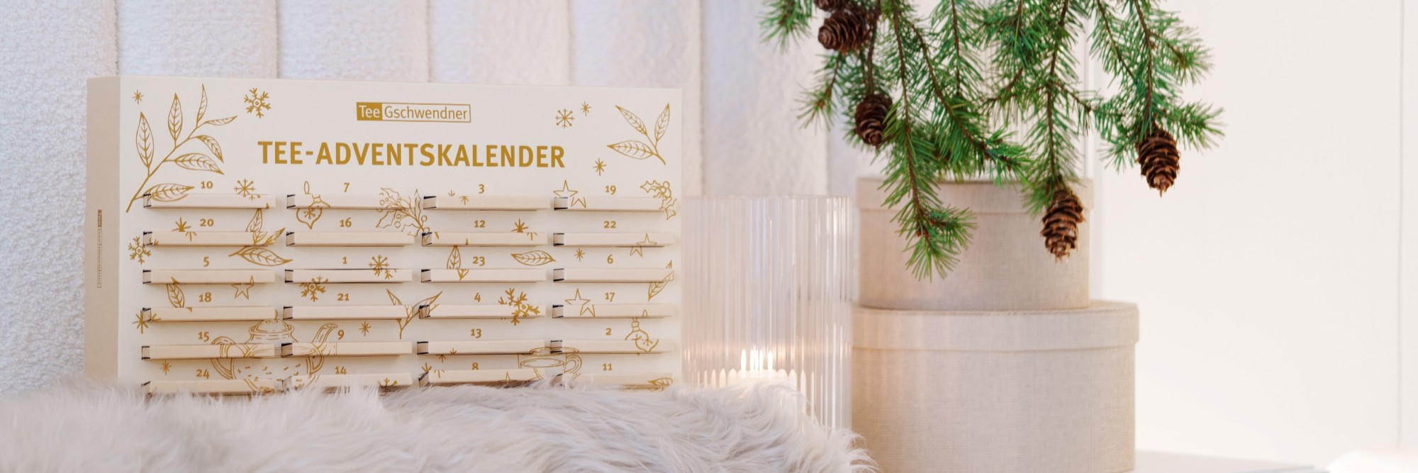 So macht die Vorfreude auf Weihnachten gleich noch mehr Freude: mit einem unserer beliebten Tee-Adventskalender, die jeden Tag eine neue köstliche Überraschung bereithalten. Sichere dir jetzt deinen persönlichen Tee-Adventskalender: ob mit losen Teeproben, unseren MasterBag Pyramidenbeuteln, 24 Teeproben zum Selberbasteln oder in der Deluxe Variante mit 24 Überraschungen aus der Teewelt und anderen Genusswelten.