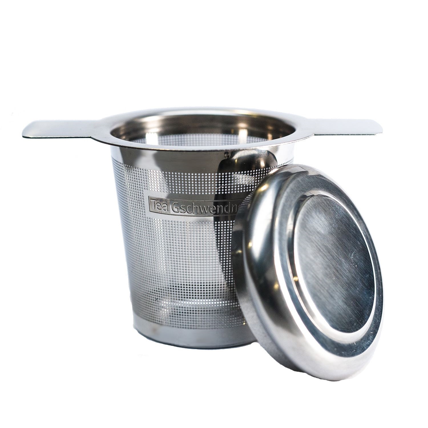 Teedauerfilter aus18/10 Edelstahl mit (Abtropf-) Deckel. Praktisch zum Aufgießen von Tee in kleinen Teekannen oder Teebechern.